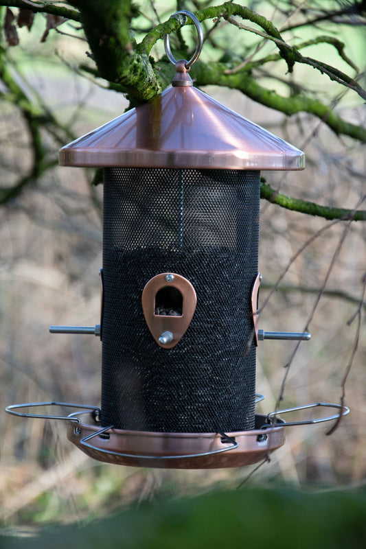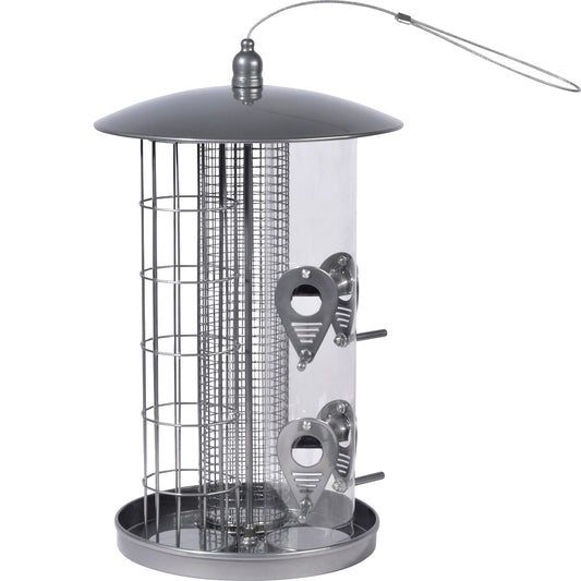 Große wetterfeste Futtersäule aus Stahl mit Gitterröhre für Nüsse & Kerne