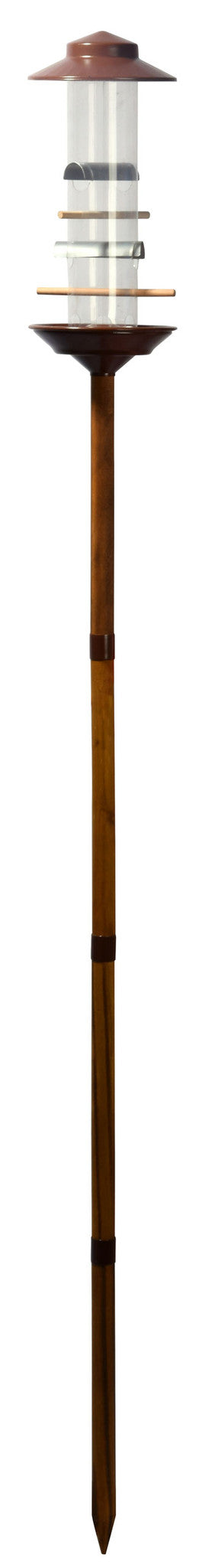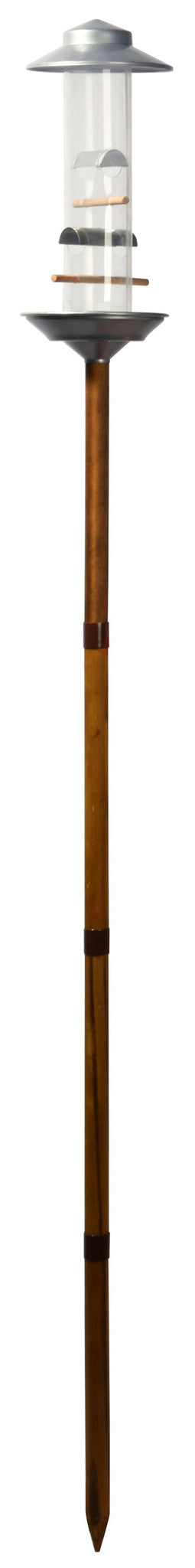 Wetterfeste Futtersäule aus Metall mit Acrylglassilo und Kiefernholz-Ständer