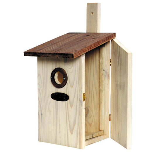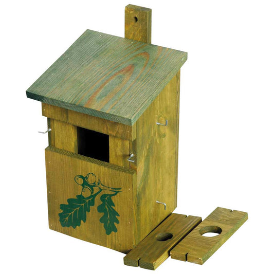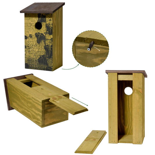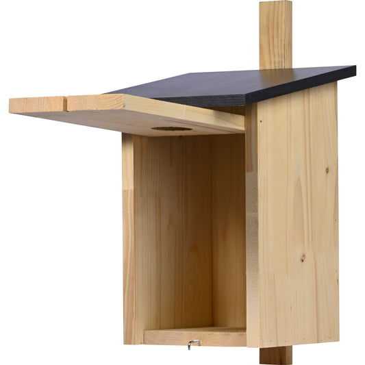 Nistkasten "Räuberschutz" - Massives Kiefernholz, Bitumendach, austauschbare Einfluglöcher, raubtiersicher