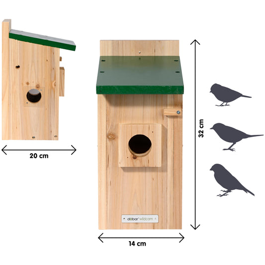Großer Nistkasten mit HD WiFi-Kamera & App - Austauschbare Einfluglöcher