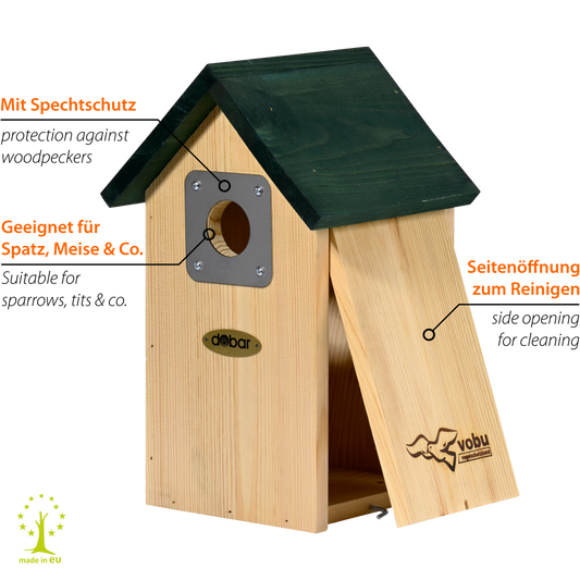 VOBU Nistkasten für Höhlenbrüter - FSC®-zertifiziertes Kiefernholz Ø 35 mm Einflugloch Spechtschutz