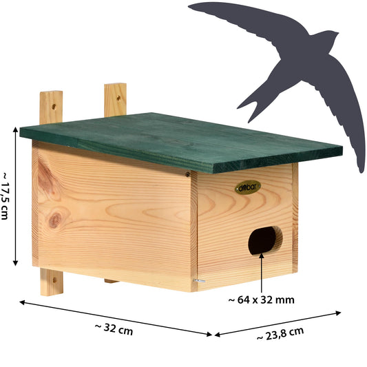 VOBU Nistkasten für Mauersegler - Kiefernholz, Reinigungsklappe, wetterfest
