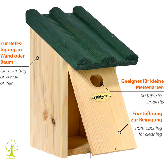 VOBU Nistkasten "Gracht" für Meisen - FSC®-Kiefernholz, Reinigungsklappe, wetterfest