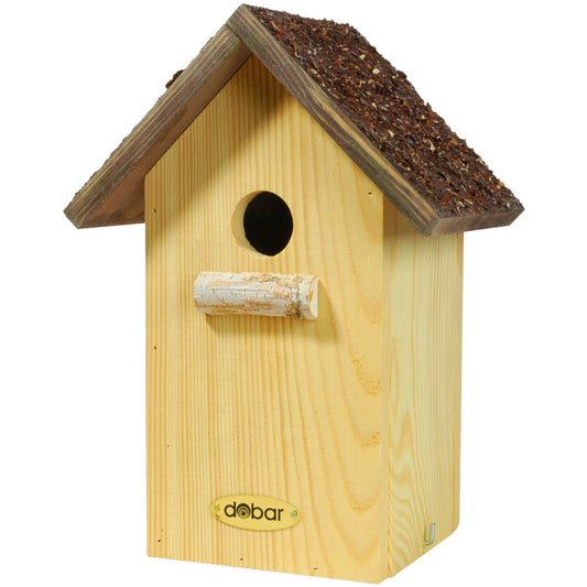 Klassischer Nistkasten aus massivem Kiefernholz, mit wasserdichtem Rindendach