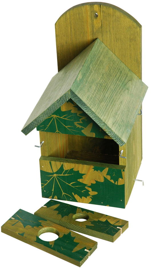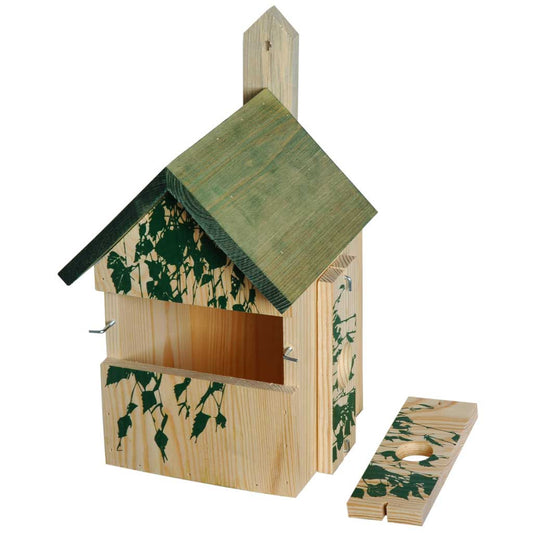 Wetterfester Nistkasten aus Kiefernholz mit austauschbaren Einfluglöchern und Siebdruck-Motiv "Ahorn"
