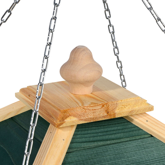 Großes Vogelfutterhaus "Narsaq" aus wetterfestem Kiefernholz mit grünem Dach und Metallkette
