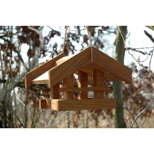 Hochwertiges Vogelfutterhaus „Basis“ aus massivem Eichenholz, mit Kordel