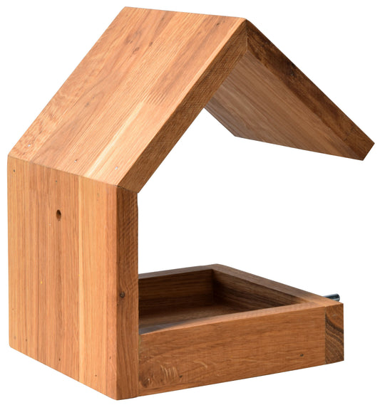 Vogelfutterhaus "Bauhaus III" - Eichenholz, wetterfest, minimalistisches Design, mit Aufhängung und Ständeroption