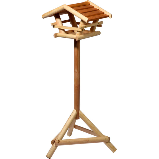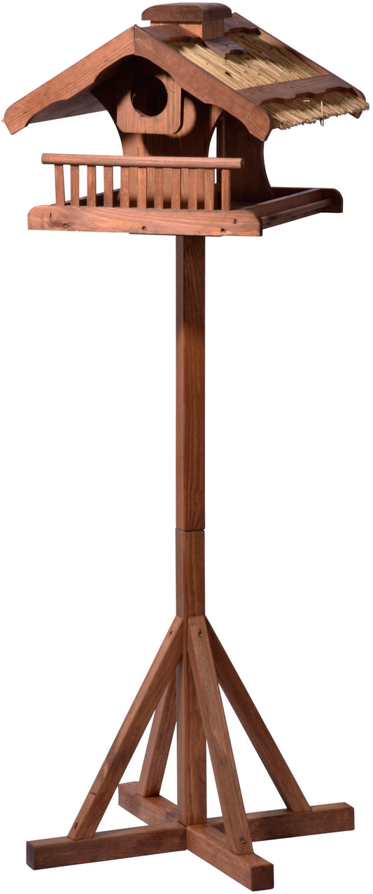 Vogelfutterhaus - FSC®-Kiefernholz, Schilfdach, wetterfest, mit dreibeinigem Ständer