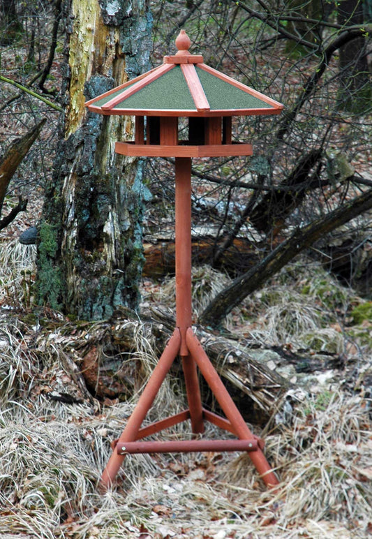Vogelfutterhaus - Kiefernholz, wetterfest, mit Bitumendach und stabilem Ständer