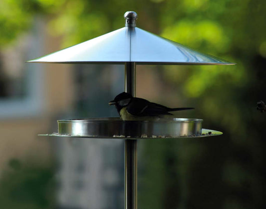 Vogelfutterstation "Silberglanz" – Wetterfestes Design aus Edelstahl, mit großem Dachüberstand