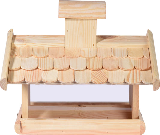 Großes Vogelhaus mit Holzschindeldach und Acryl-Futtersilo - Futterstation aus Kiefernholz