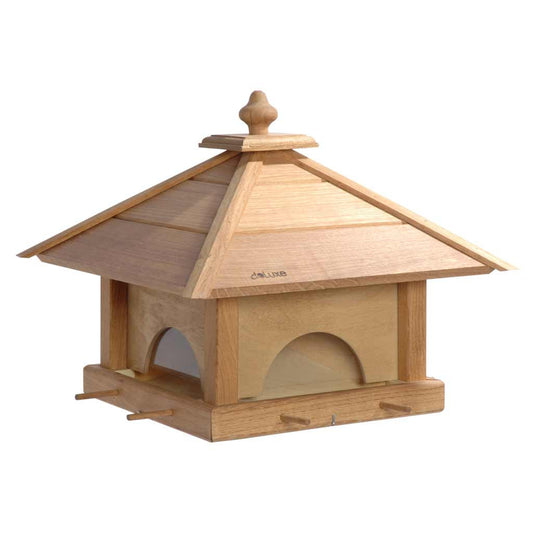 XL Vogelfutterhaus "4 Schubladen" aus massivem Eichenholz mit herausziehbaren Futterschubladen – Großes Vogelhaus für Ständermontage